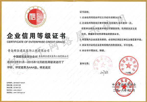全國(guó)AAA級(jí)信用評(píng)價(jià)企業(yè)