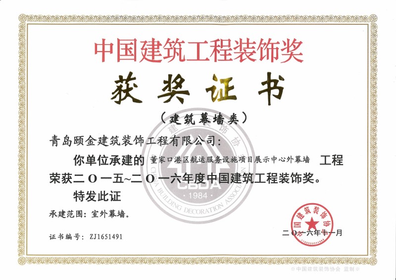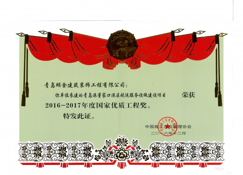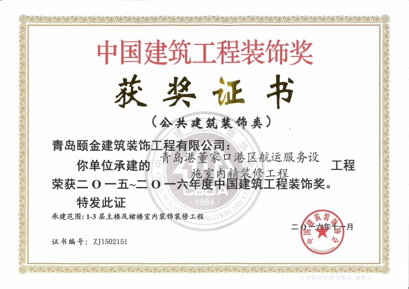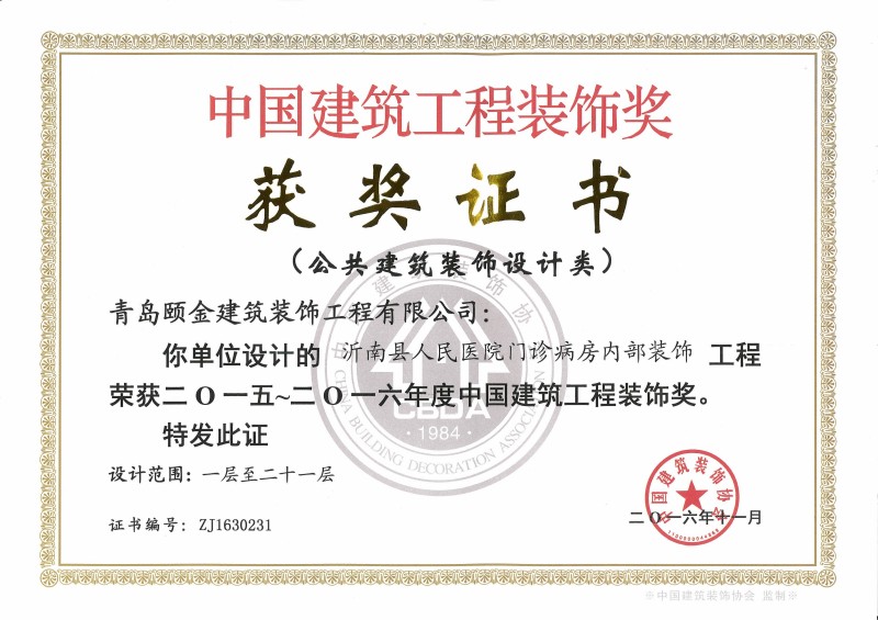 山東省裝飾裝修工程質(zhì)量泰山杯獎